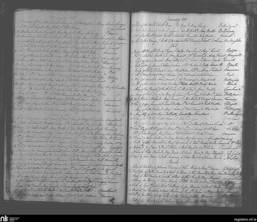 Ballingarry; County of Tipperary; Diocese of Cashel and Emly. Baptisms, Dec. 1842 to Mar. 1843