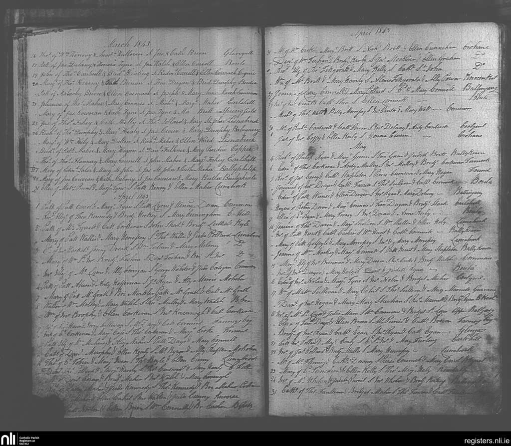 Ballingarry; County of Tipperary; Diocese of Cashel and Emly. Baptisms, Mar. 1843 to May 1843