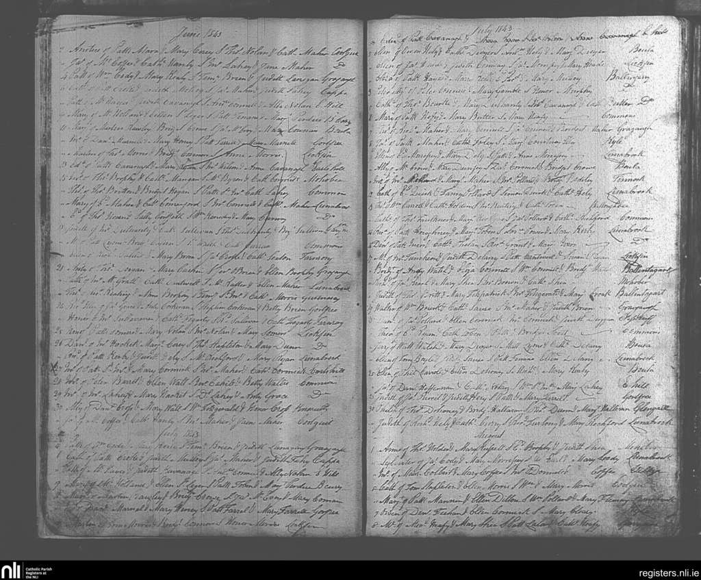 Ballingarry; County of Tipperary; Diocese of Cashel and Emly. Baptisms, June 1843 to Aug. 1843
