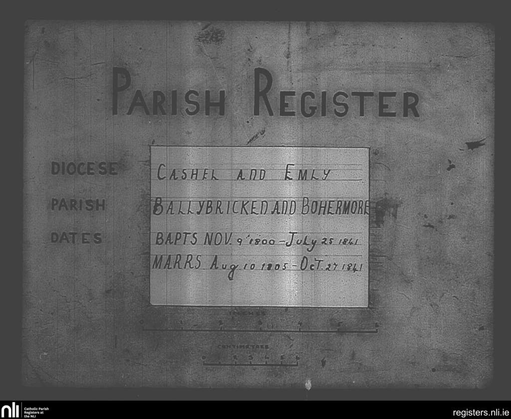Ballybricken and Bohermore; County of Limerick; Diocese of Cashel and Emly. Baptisms, Marriages