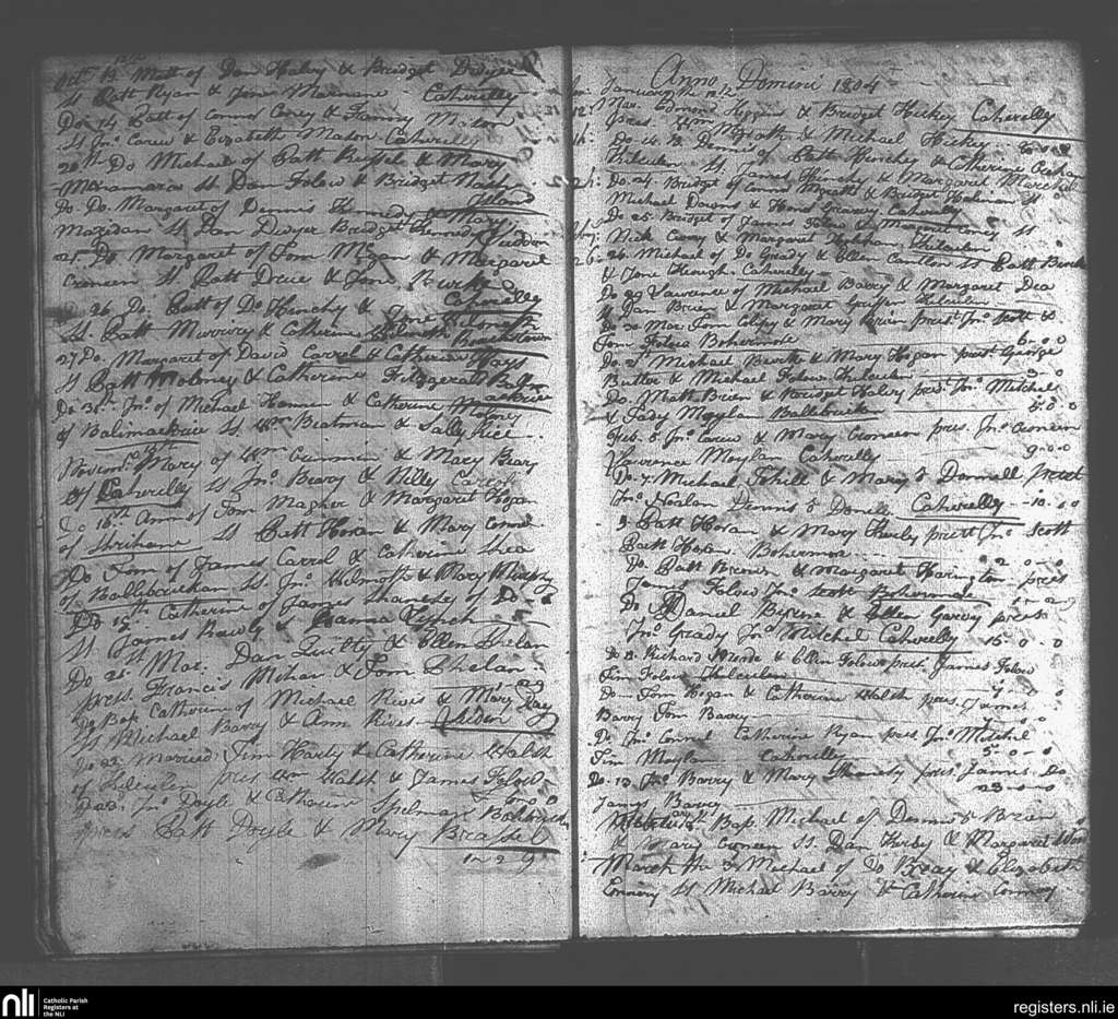 Ballybricken and Bohermore; County of Limerick; Diocese of Cashel and Emly. Baptisms, Oct. 1803 to Mar. 1804