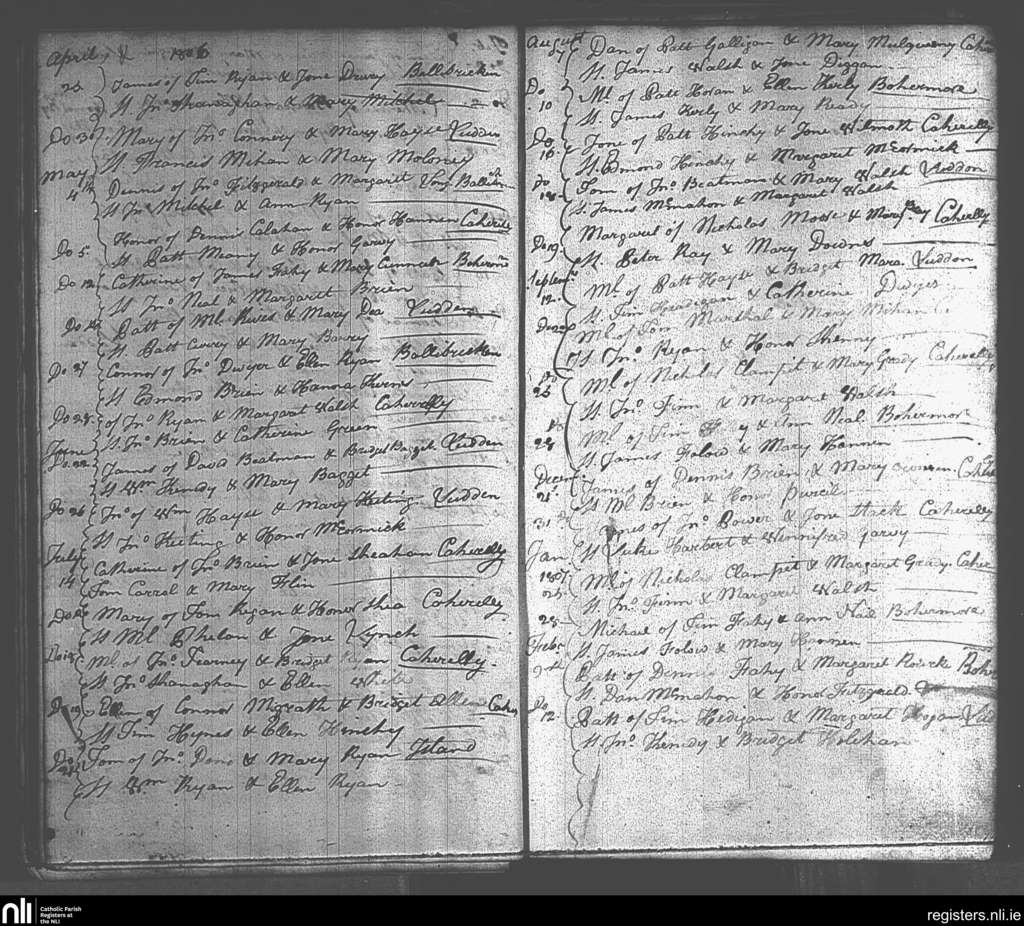 Ballybricken and Bohermore; County of Limerick; Diocese of Cashel and Emly. Baptisms, Apr. 1806 to Feb. 1807