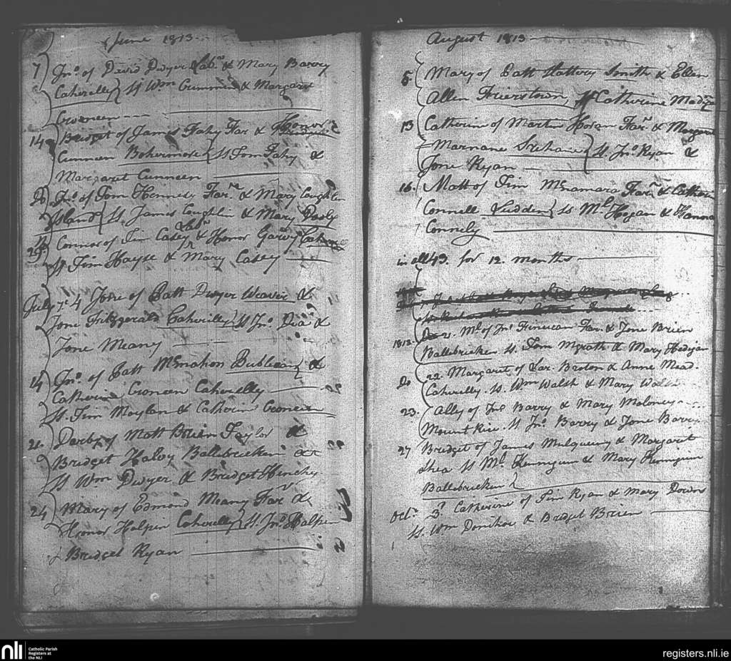 Ballybricken and Bohermore; County of Limerick; Diocese of Cashel and Emly. Baptisms, June 1813 to Oct. 1813