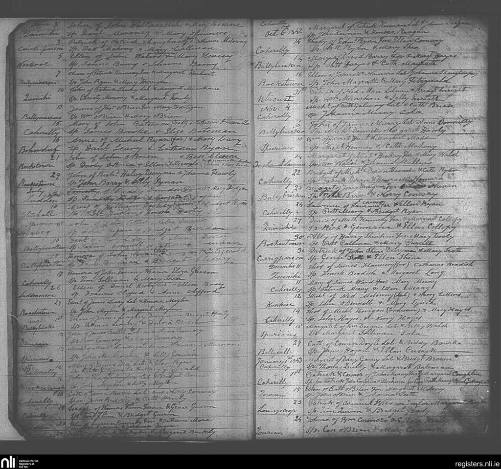 Ballybricken and Bohermore; County of Limerick; Diocese of Cashel and Emly. Baptisms, June 1842 to Jan. 1843