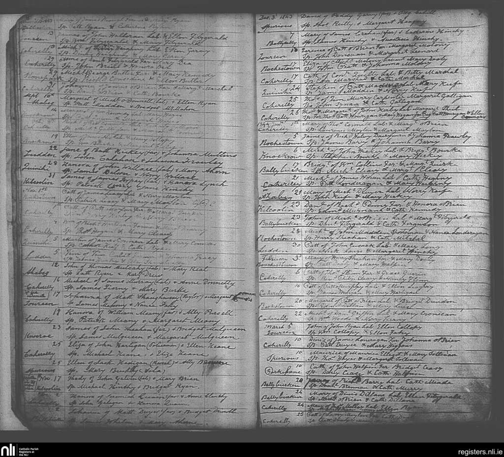 Ballybricken and Bohermore; County of Limerick; Diocese of Cashel and Emly. Baptisms, Aug. 1843 to Mar. 1844