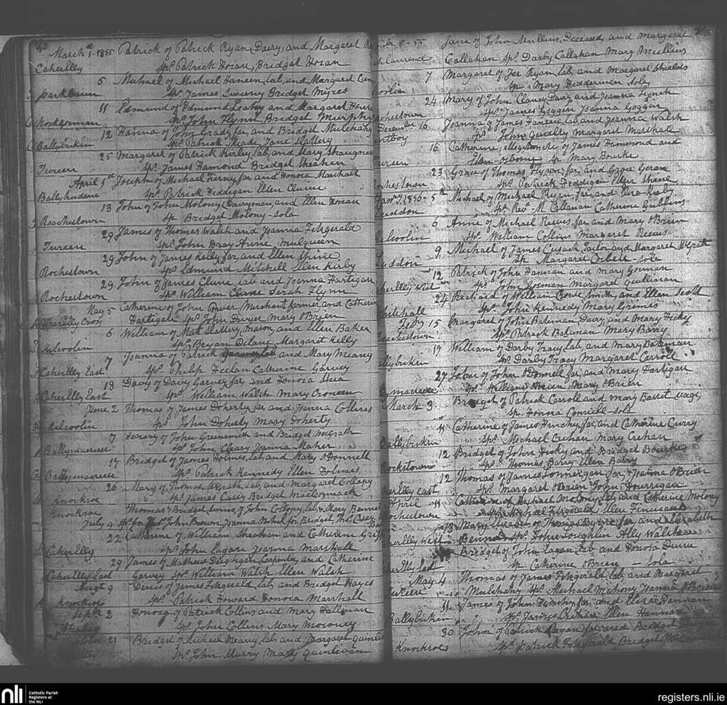 Ballybricken and Bohermore; County of Limerick; Diocese of Cashel and Emly. Baptisms, Mar. 1855 to May 1856