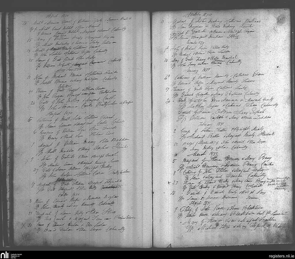 Ballybricken and Bohermore; County of Limerick; Diocese of Cashel and Emly. Baptisms, Apr. 1870 to Apr. 1871