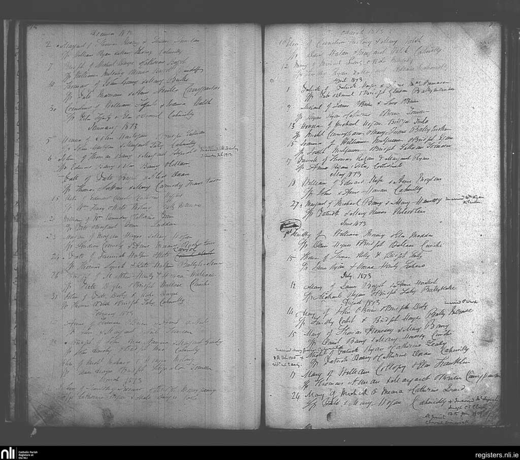 Ballybricken and Bohermore; County of Limerick; Diocese of Cashel and Emly. Baptisms, Dec. 1872 to Aug. 1873