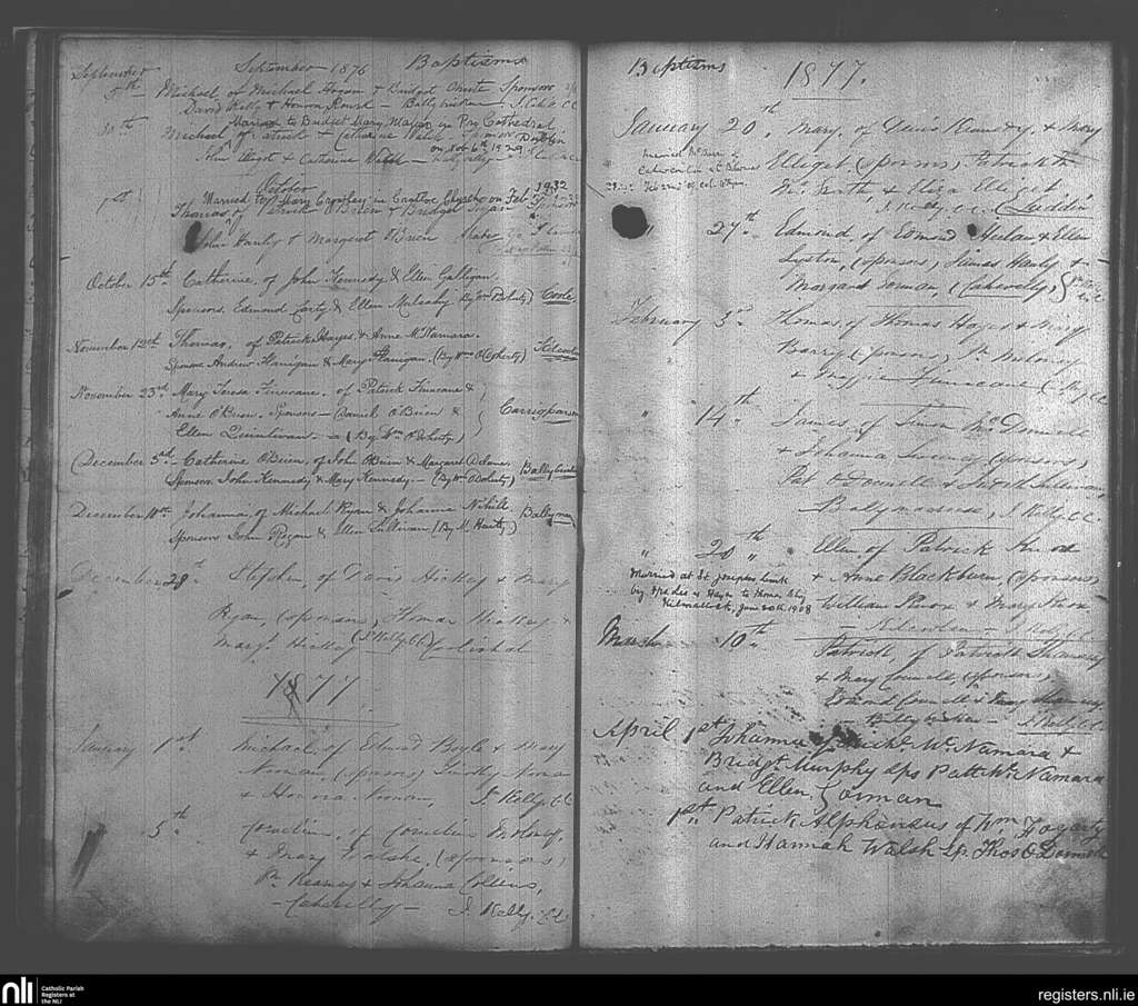 Ballybricken and Bohermore; County of Limerick; Diocese of Cashel and Emly. Baptisms, Sep. 1876 to Apr. 1877