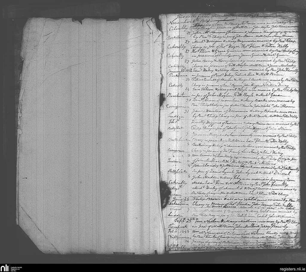Ballybricken and Bohermore; County of Limerick; Diocese of Cashel and Emly. Marriages, Nov. 1841 to Feb. 1843