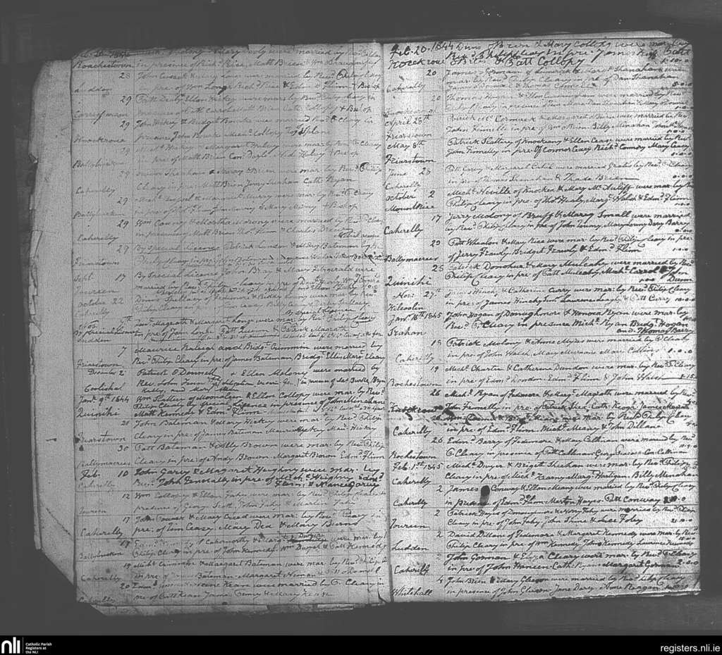 Ballybricken and Bohermore; County of Limerick; Diocese of Cashel and Emly. Marriages, Feb. 1843 to Feb. 1845