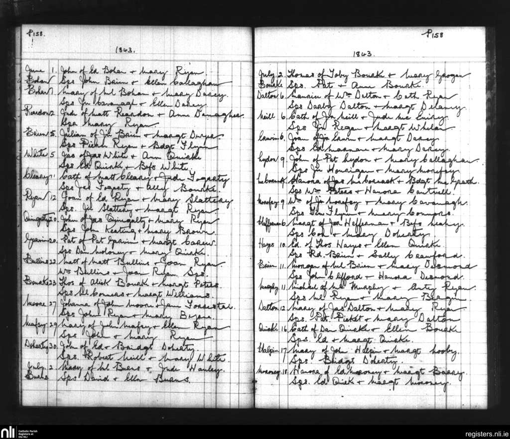 Bansha and Kilmoyler; County of Tipperary; Diocese of Cashel and Emly. Baptisms, June 1843 to July 1843