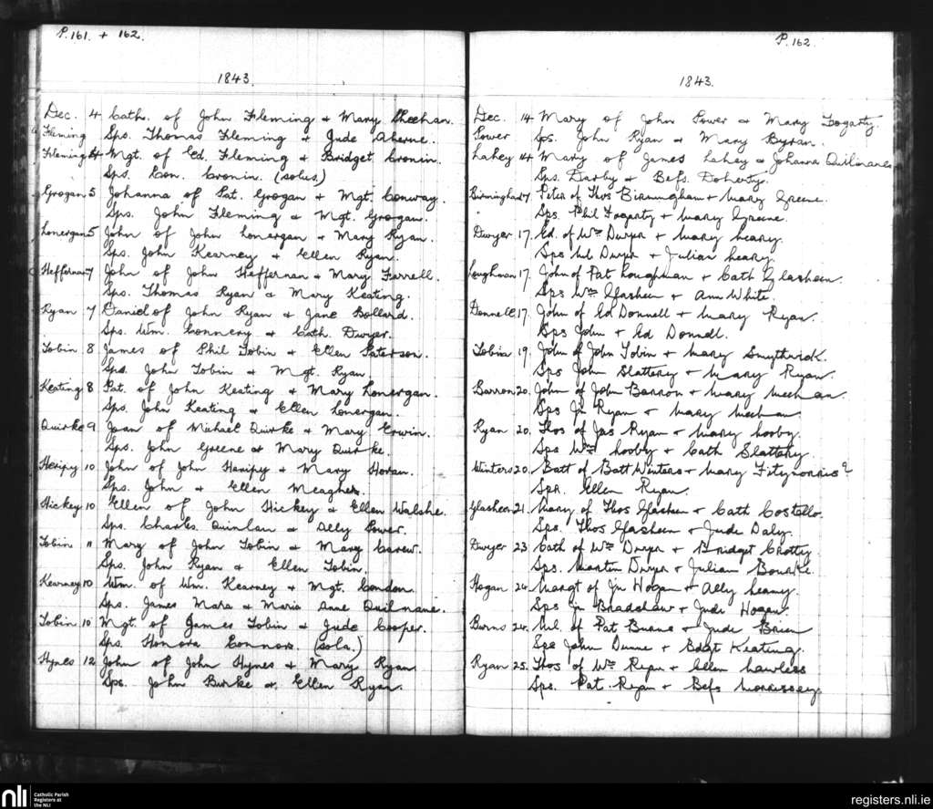 Bansha and Kilmoyler; County of Tipperary; Diocese of Cashel and Emly. Baptisms, Dec. 1843