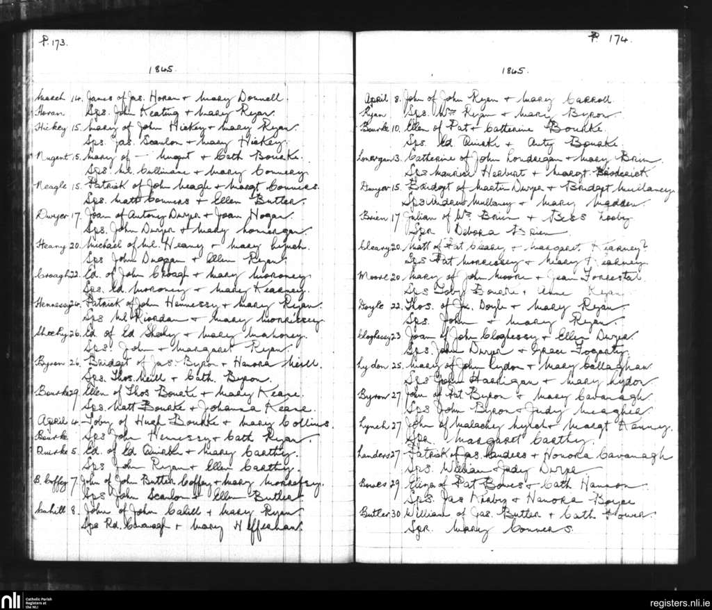 Bansha and Kilmoyler; County of Tipperary; Diocese of Cashel and Emly. Baptisms, Mar. 1845 to Apr. 1845