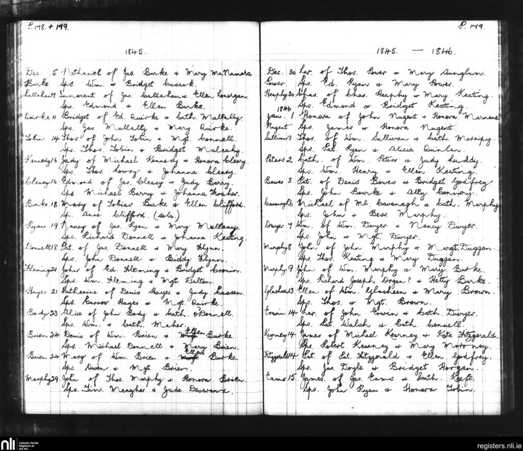 Bansha and Kilmoyler; County of Tipperary; Diocese of Cashel and Emly. Baptisms, Dec. 1845 to Jan. 1846