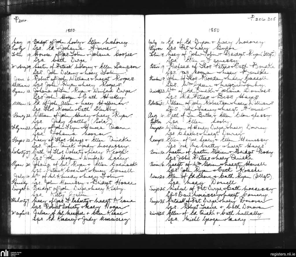 Bansha and Kilmoyler; County of Tipperary; Diocese of Cashel and Emly. Baptisms, May 1850 to Aug. 1850