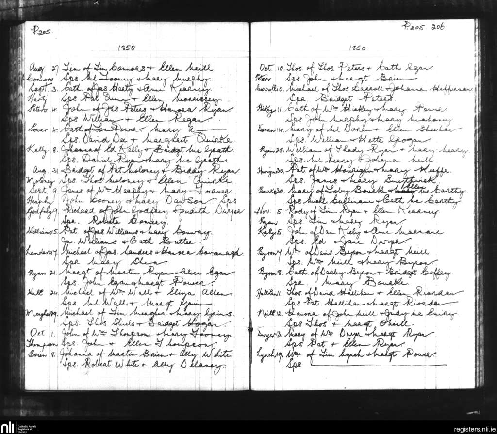 Bansha and Kilmoyler; County of Tipperary; Diocese of Cashel and Emly. Baptisms, Aug. 1850 to Nov. 1850