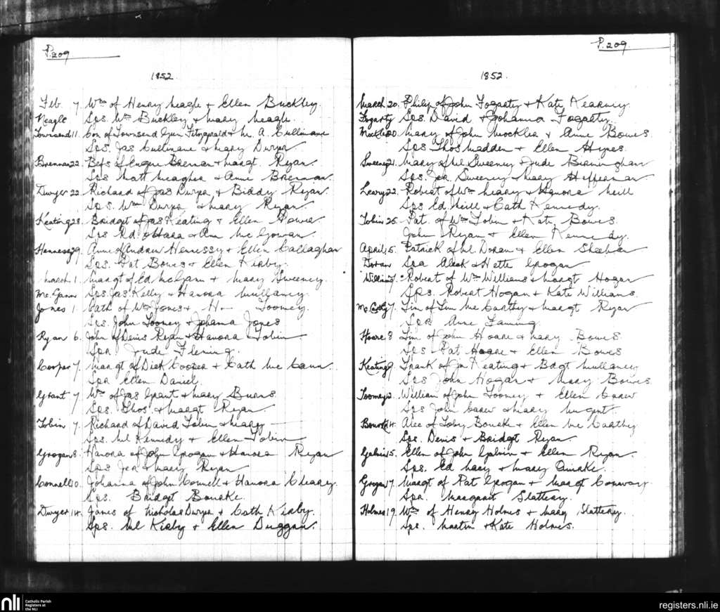 Bansha and Kilmoyler; County of Tipperary; Diocese of Cashel and Emly. Baptisms, Feb. 1852 to Apr. 1852