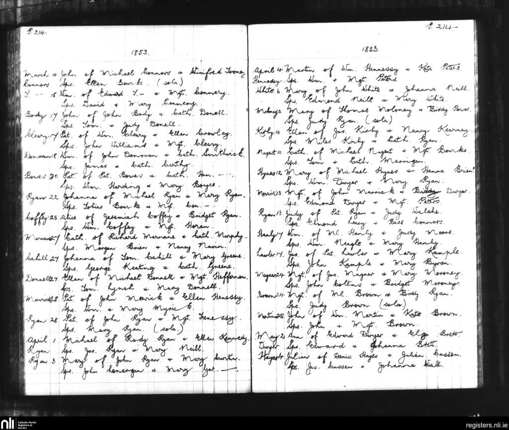 Bansha and Kilmoyler; County of Tipperary; Diocese of Cashel and Emly. Baptisms, Mar. 1853 to May 1853
