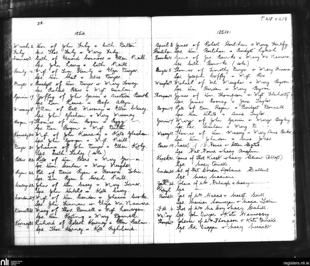 Bansha and Kilmoyler; County of Tipperary; Diocese of Cashel and Emly. Baptisms, Jan. 1854 to Apr. 1854