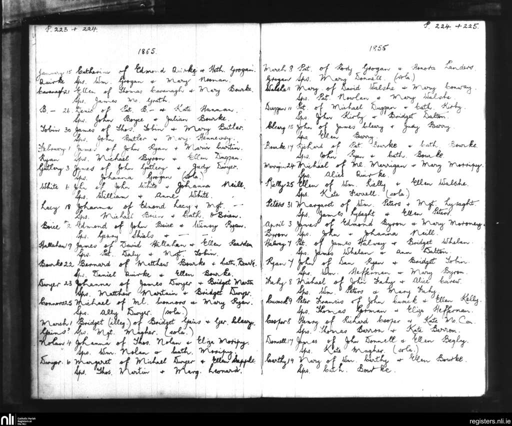 Bansha and Kilmoyler; County of Tipperary; Diocese of Cashel and Emly. Baptisms, Jan. 1855 to Apr. 1855
