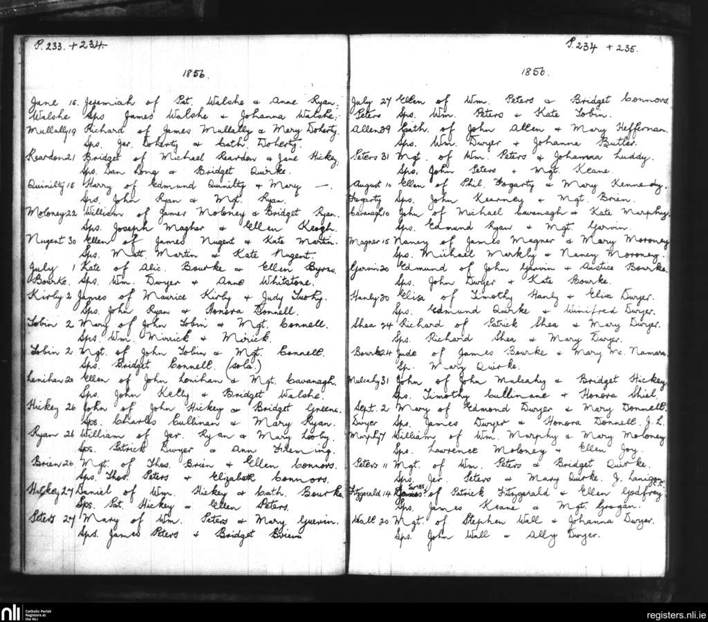 Bansha and Kilmoyler; County of Tipperary; Diocese of Cashel and Emly. Baptisms, June 1856 to Sep. 1856