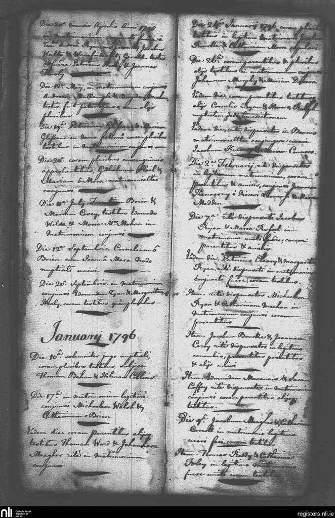 Newport; County of Tipperary; Diocese of Cashel and Emly. Marriages, Apr. 1795 to Feb. 1796