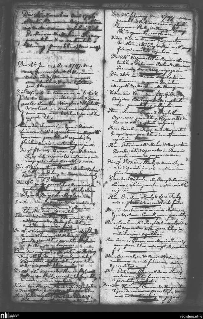 Newport; County of Tipperary; Diocese of Cashel and Emly. Marriages, Nov. 1796 to Feb. 1797