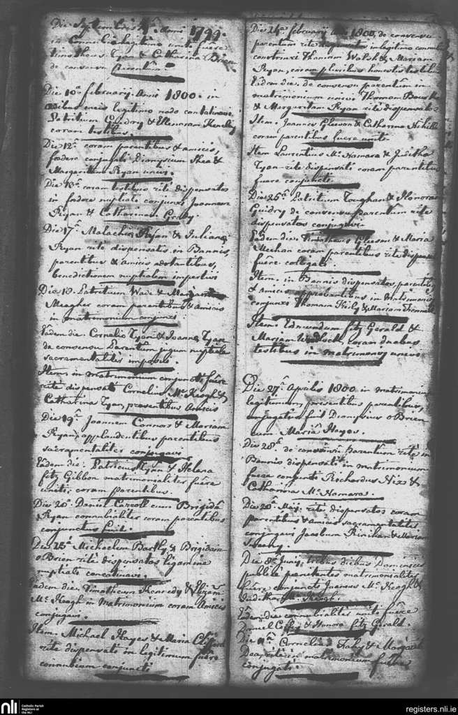 Newport; County of Tipperary; Diocese of Cashel and Emly. Marriages, Sep. 1799 to June 1800