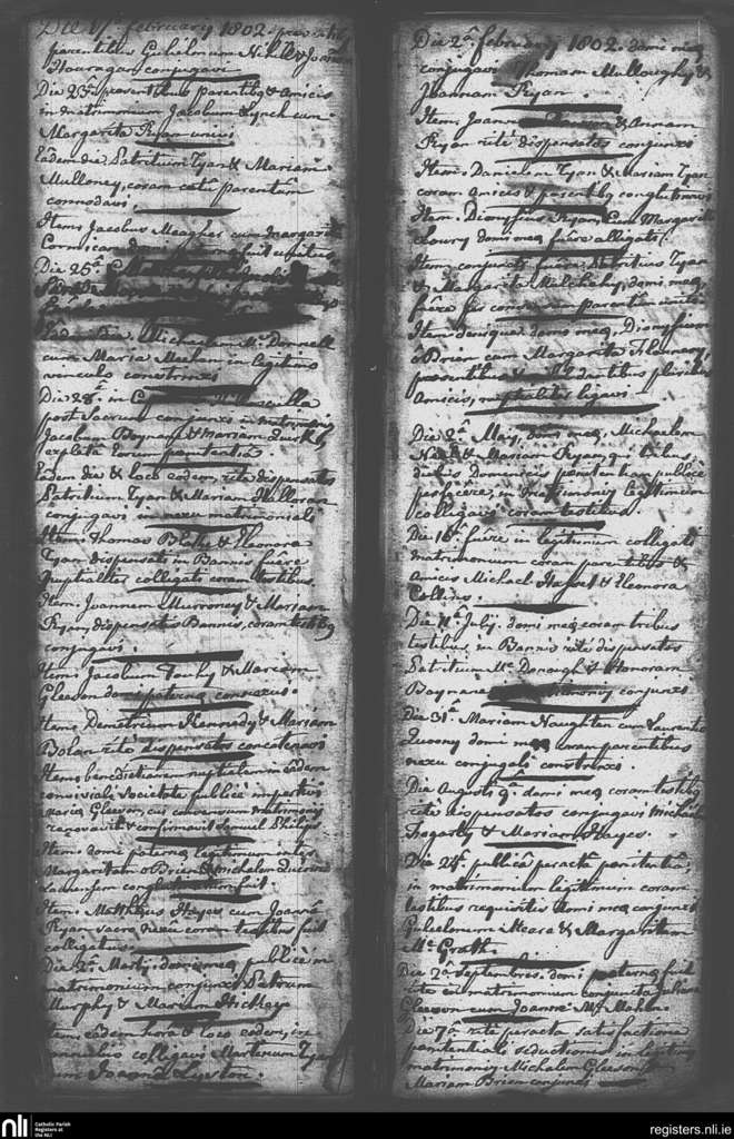 Newport; County of Tipperary; Diocese of Cashel and Emly. Marriages, Feb. 1802 to Sep. 1802