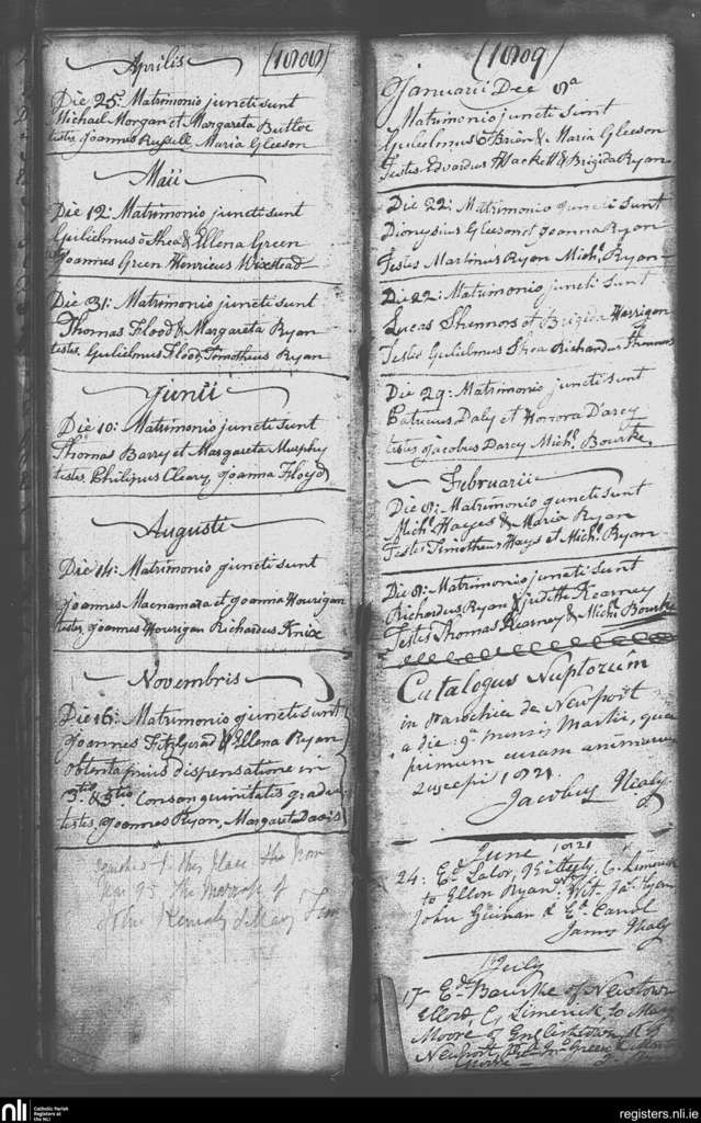 Newport; County of Tipperary; Diocese of Cashel and Emly. Marriages, Apr. 1808 to July 1821