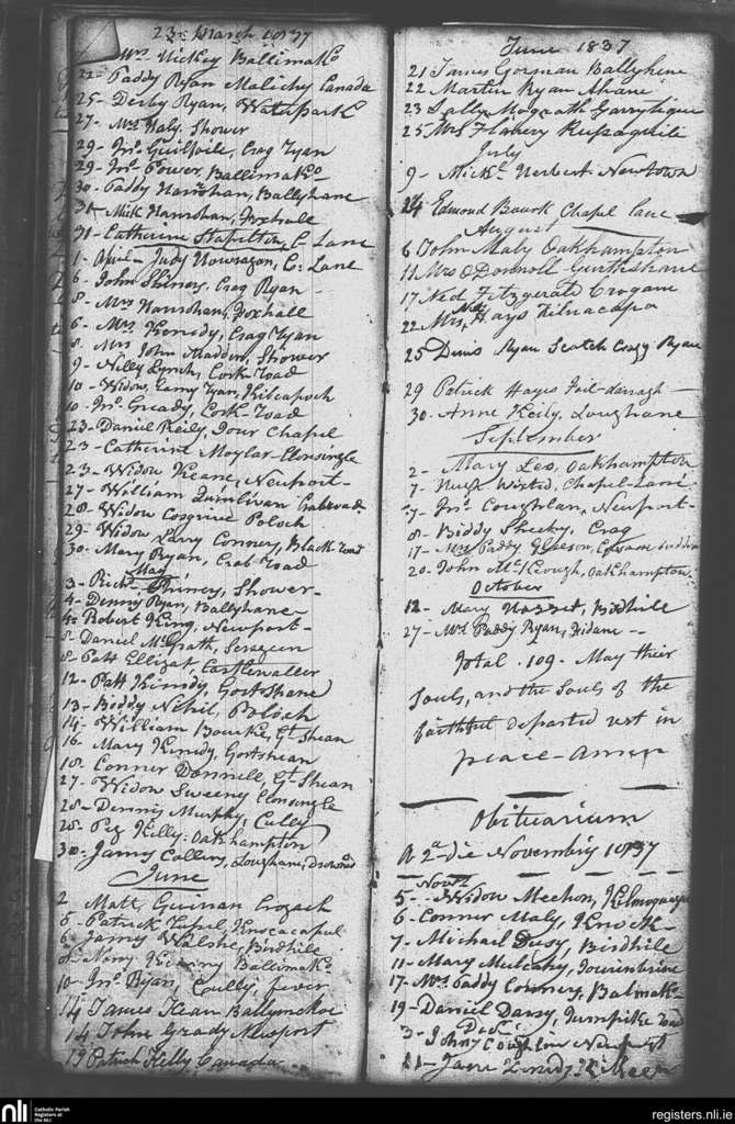Newport; County of Tipperary; Diocese of Cashel and Emly. Deaths, Mar. 1837 to Dec. 1837
