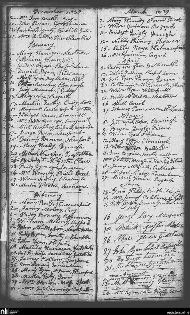 Newport; County of Tipperary; Diocese of Cashel and Emly. Deaths, Jan. 1838 to Dec. 1838