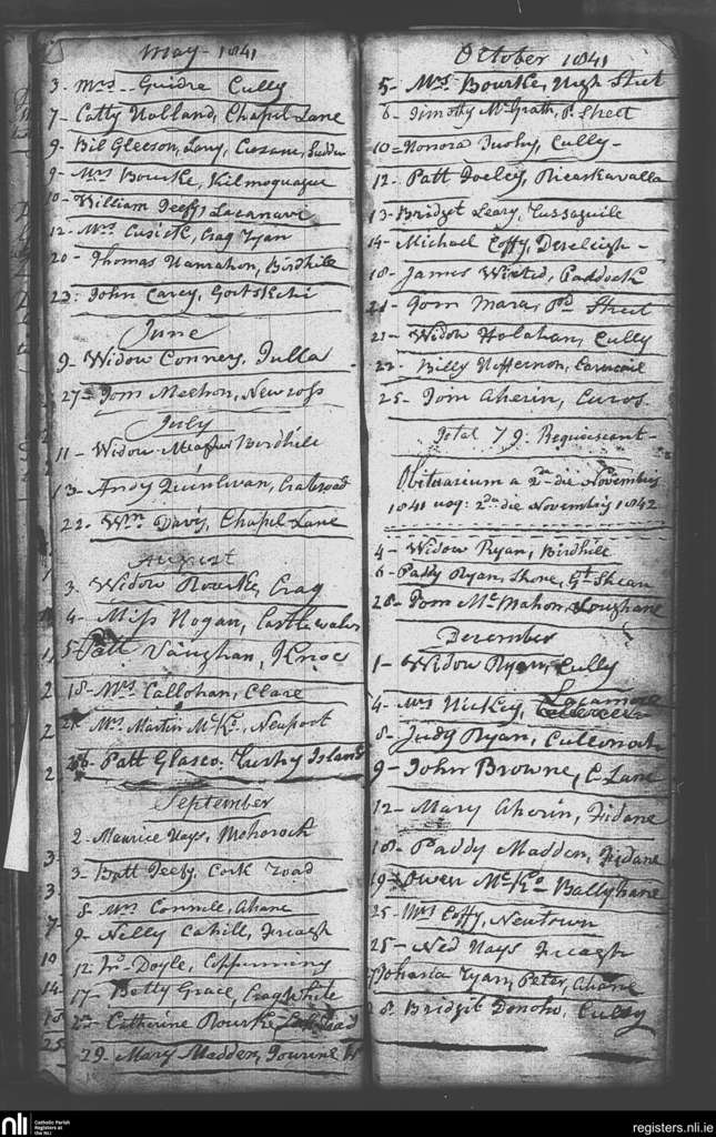 Newport; County of Tipperary; Diocese of Cashel and Emly. Deaths, May 1841 to Dec. 1841