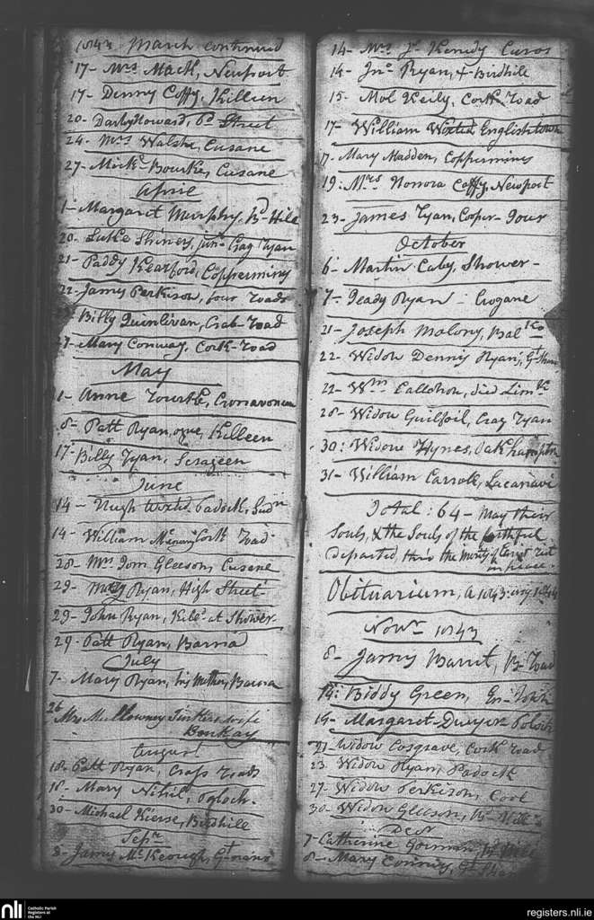 Newport; County of Tipperary; Diocese of Cashel and Emly. Deaths, Mar. 1843 to Dec. 1843