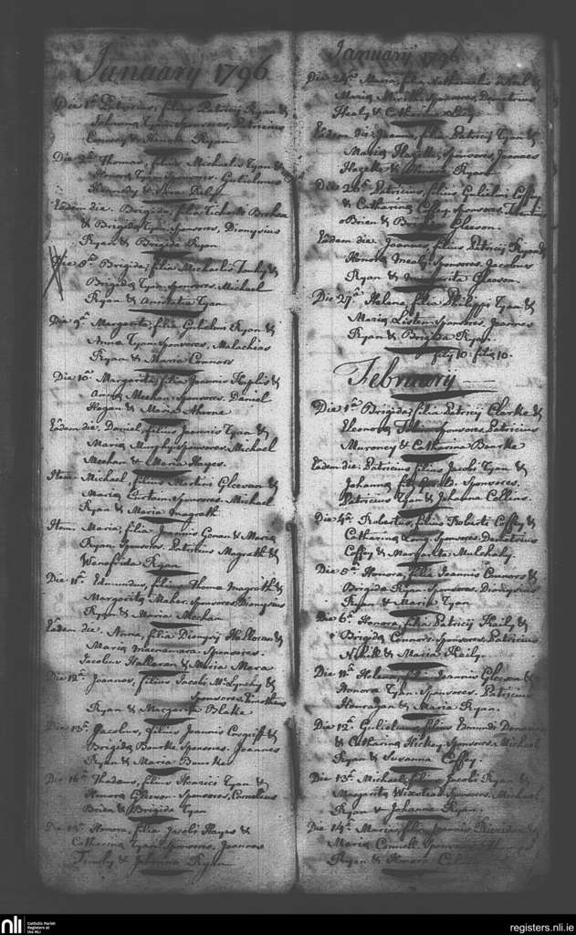 Newport; County of Tipperary; Diocese of Cashel and Emly. Baptisms, Jan. 1796 to Feb. 1796