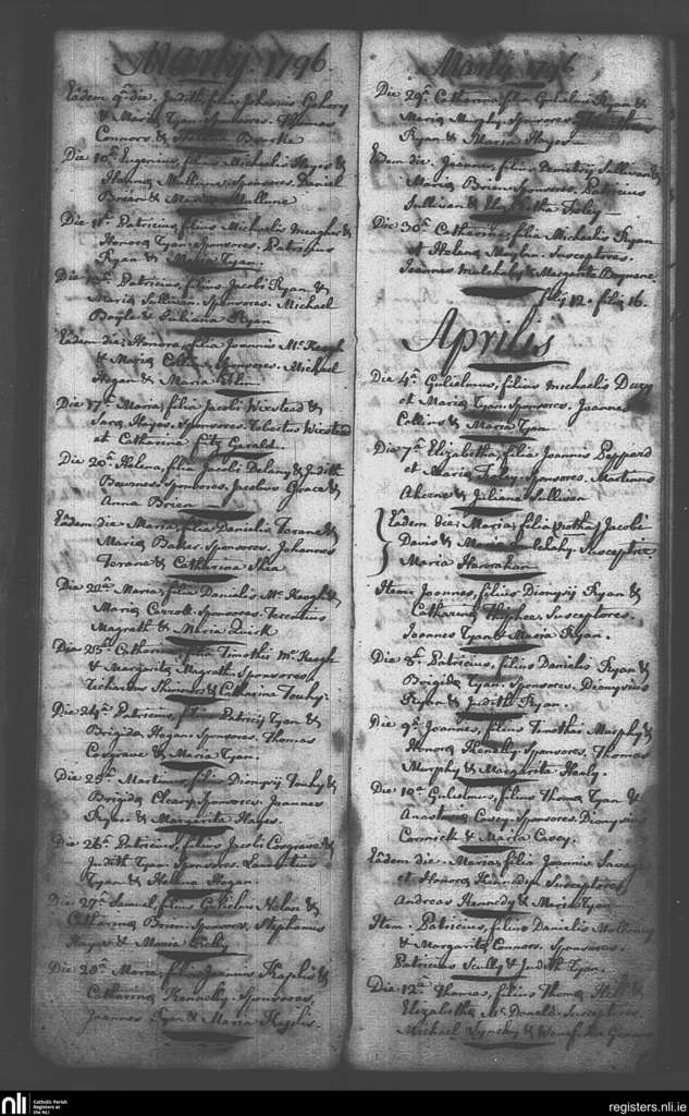 Newport; County of Tipperary; Diocese of Cashel and Emly. Baptisms, Mar. 1796 to Apr. 1796