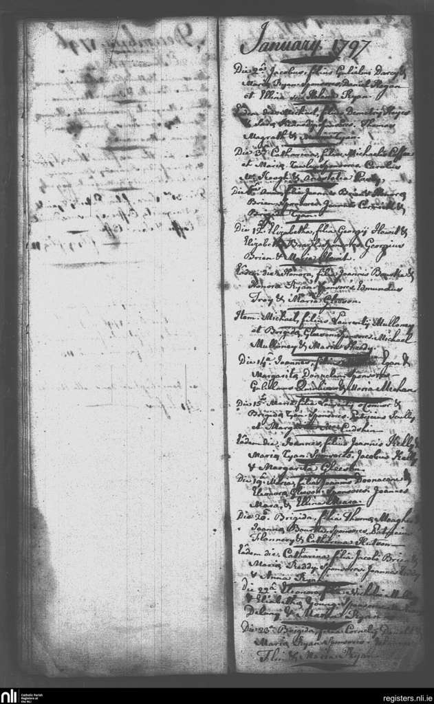 Newport; County of Tipperary; Diocese of Cashel and Emly. Baptisms, Jan. 1797