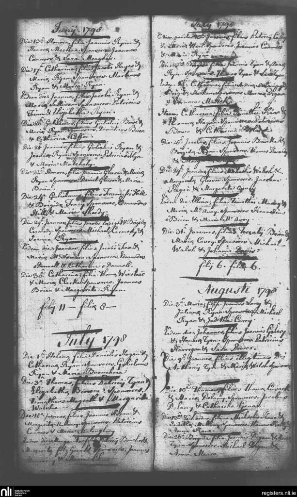 Newport; County of Tipperary; Diocese of Cashel and Emly. Baptisms, June 1798 to Aug. 1798