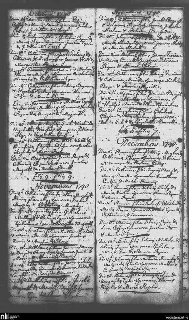 Newport; County of Tipperary; Diocese of Cashel and Emly. Baptisms, Oct. 1798 to Dec. 1798