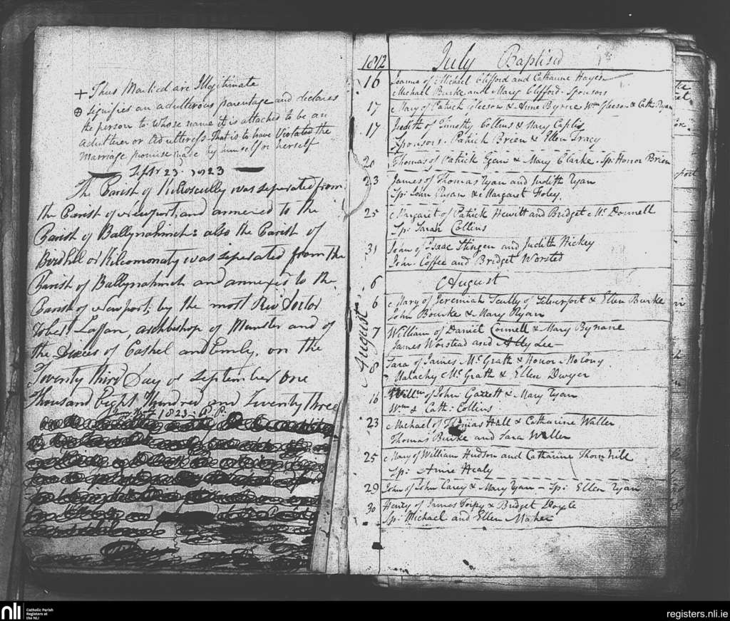 Newport; County of Tipperary; Diocese of Cashel and Emly. Baptisms, July 1812 to Aug. 1812