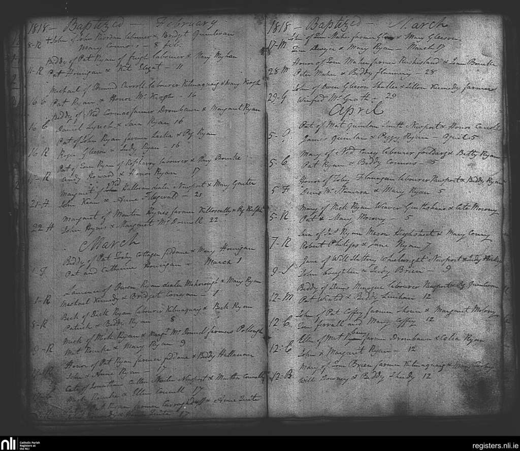 Newport; County of Tipperary; Diocese of Cashel and Emly. Baptisms, Feb. 1818 to Apr. 1818