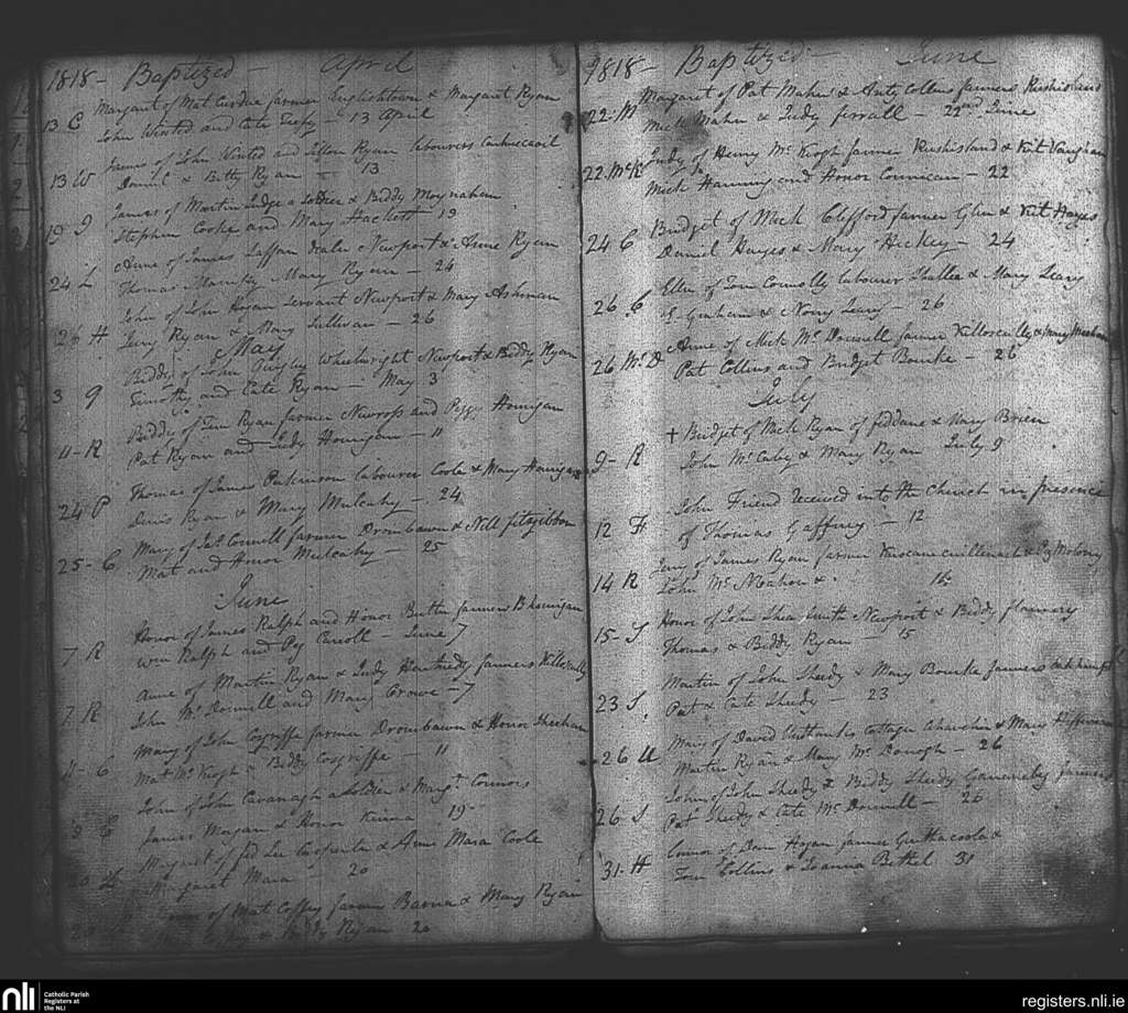 Newport; County of Tipperary; Diocese of Cashel and Emly. Baptisms, Apr. 1818 to July 1818