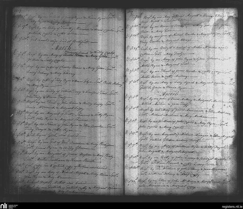 Newport; County of Tipperary; Diocese of Cashel and Emly. Baptisms, Deaths, Feb. 1819 to Apr. 1819