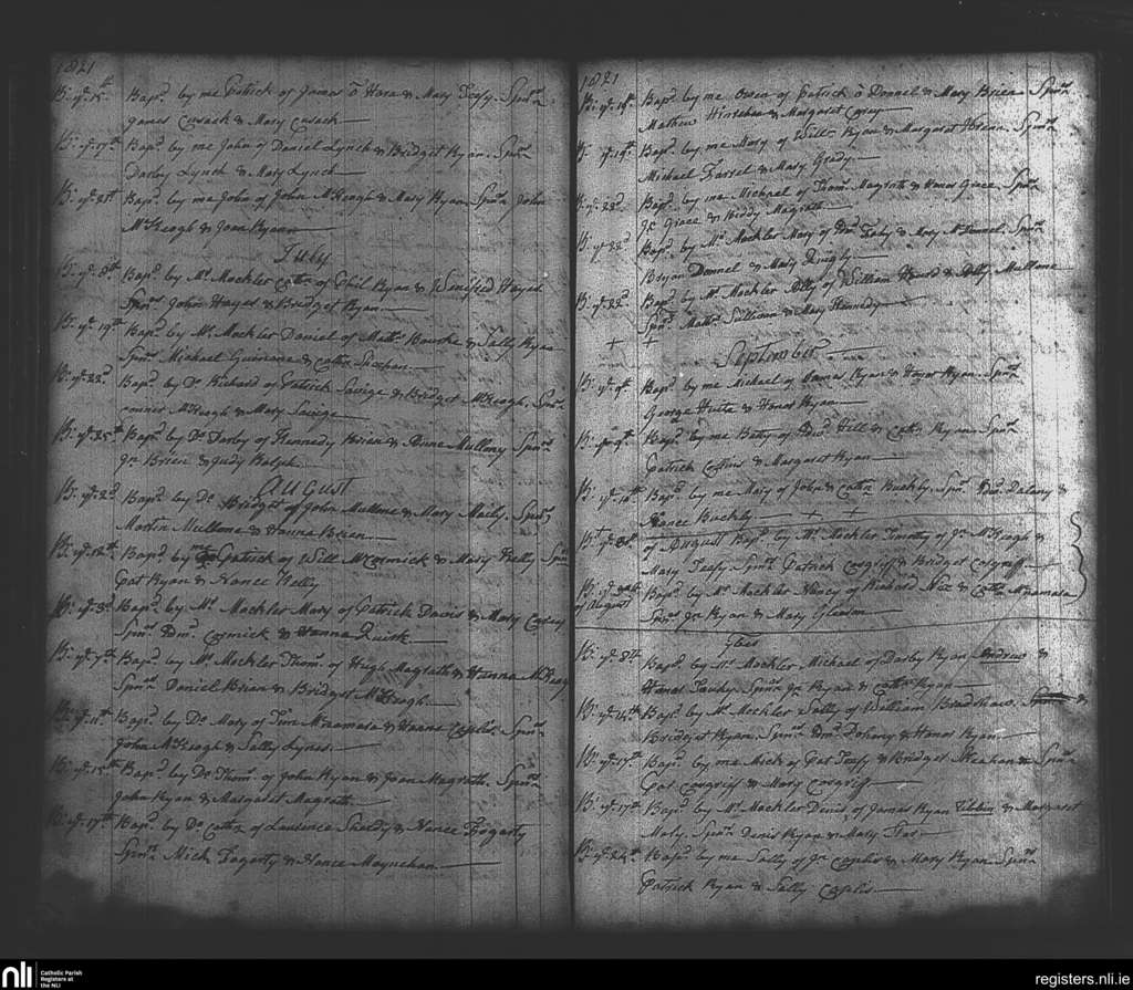 Newport; County of Tipperary; Diocese of Cashel and Emly. Baptisms, June 1821 to Sep. 1821