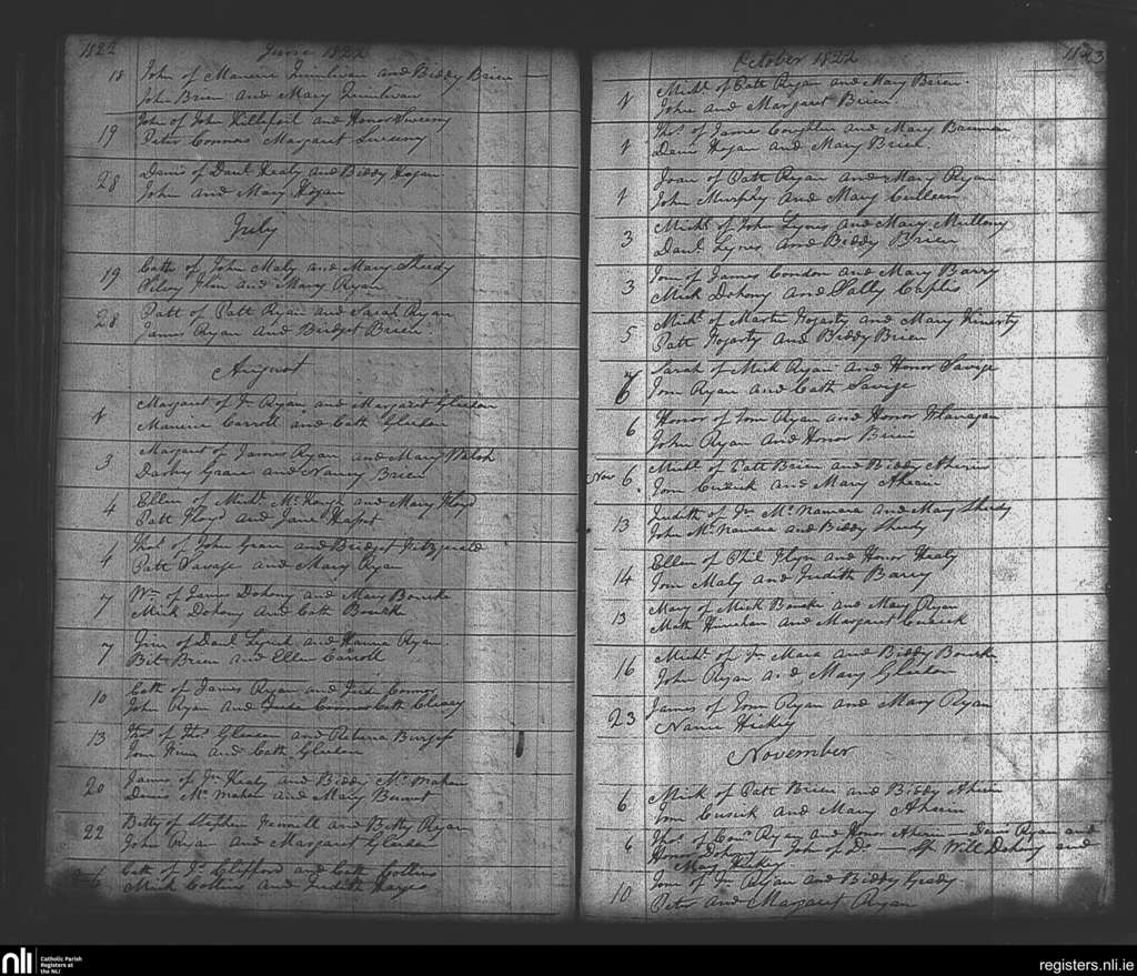 Newport; County of Tipperary; Diocese of Cashel and Emly. Baptisms, June 1822 to Nov. 1822