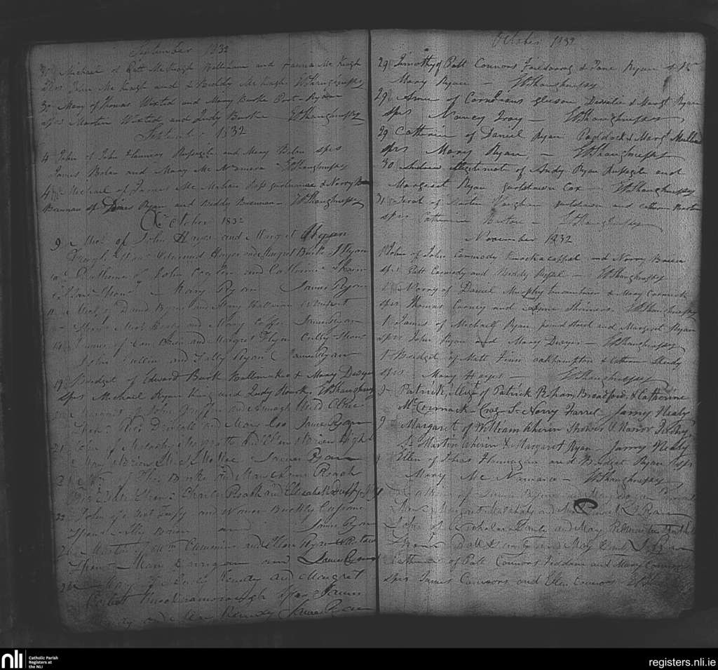 Newport; County of Tipperary; Diocese of Cashel and Emly. Baptisms, Sep. 1832 to Nov. 1832