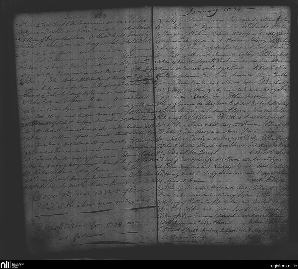 Newport; County of Tipperary; Diocese of Cashel and Emly. Baptisms, Dec. 1833 to Jan. 1834