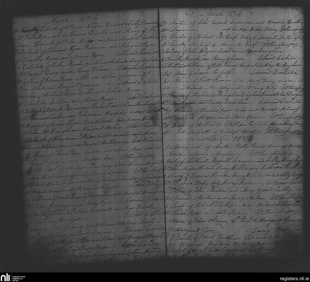 Newport; County of Tipperary; Diocese of Cashel and Emly. Baptisms, Mar. 1834 to Apr. 1834