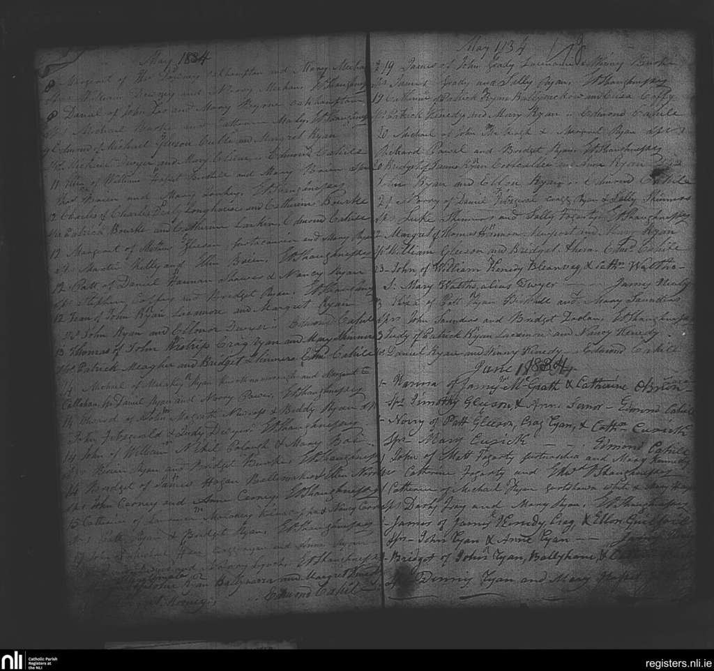 Newport; County of Tipperary; Diocese of Cashel and Emly. Baptisms, May 1834 to June 1834